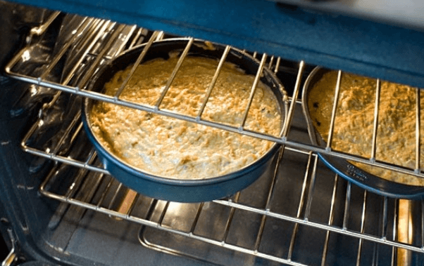 Розігрійте духовку до 180°C. Випікайте пиріг приблизно 50 хвилин. Перевіряйте готовність дерев’яною шпажкою — якщо вона виходить сухою, пиріг готовий.