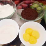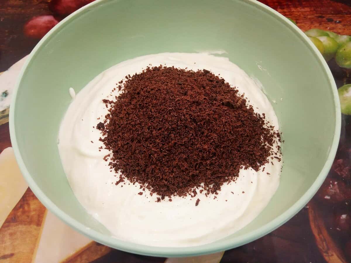 - Додаємо борошно і тертий шоколад до яєчної маси, обережно перемішуємо.