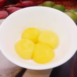 - Вводимо жовтки і перемішуємо на повільних обертах міксера.