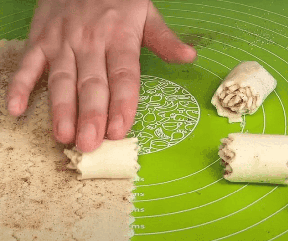 Сформуйте рулетики та посипте зверху цукром.