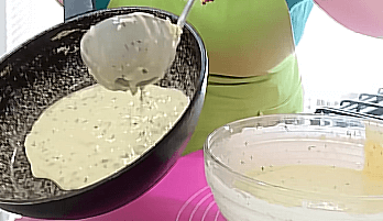- Тісто для налисників: Змішайте яйця, молоко, сіль, цукор і олію.