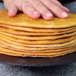 Готове тісто розділіть на 10 частин і розкачайте кожну частину. Створіть коржі діаметром приблизно 22 см, користуючись кришкою від каструлі.